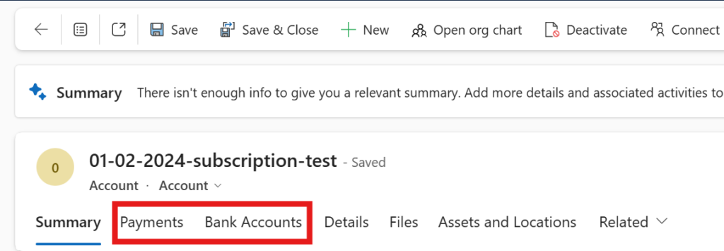 To onboard a customer to direct debit ensure that the record has been saved and then browse to the Payments tab.
