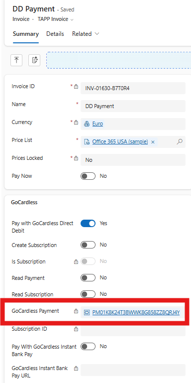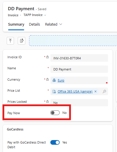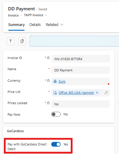 Bluefort TAPP for GoCardless and Microsoft Dataverse / Microsoft Dynamics 365 Sales – Invoice Payment using Direct Debit