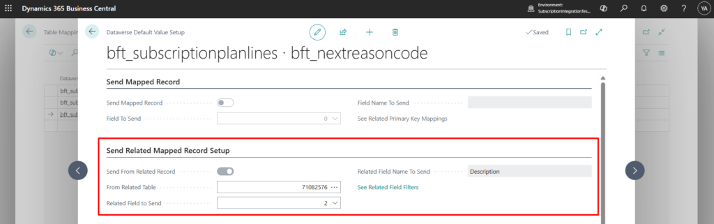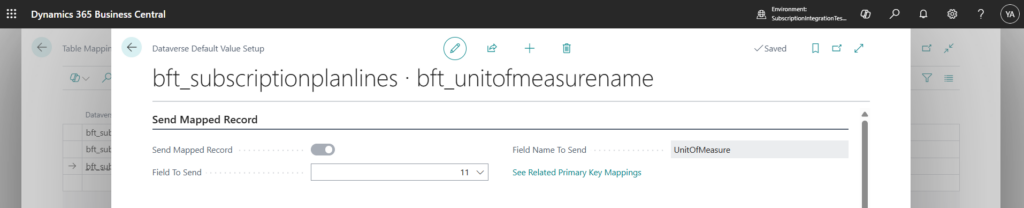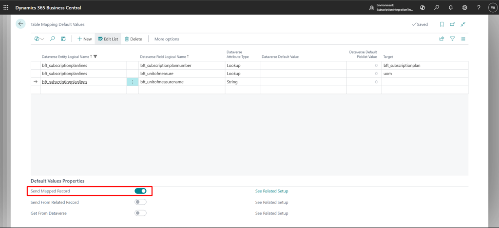 - At the bottom of the Dataverse Default Value page, switch on the Send Mapped Record option