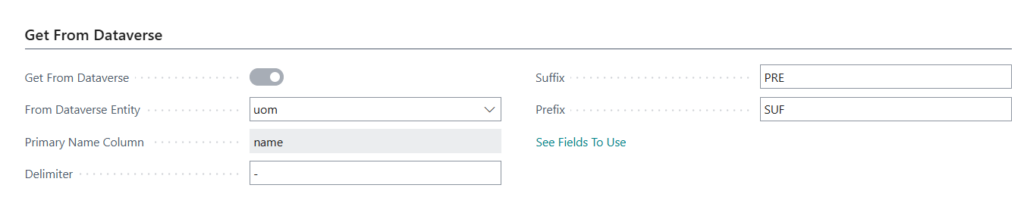 - Click on See Fields to Use to set up the fields that will be used to query Dataverse