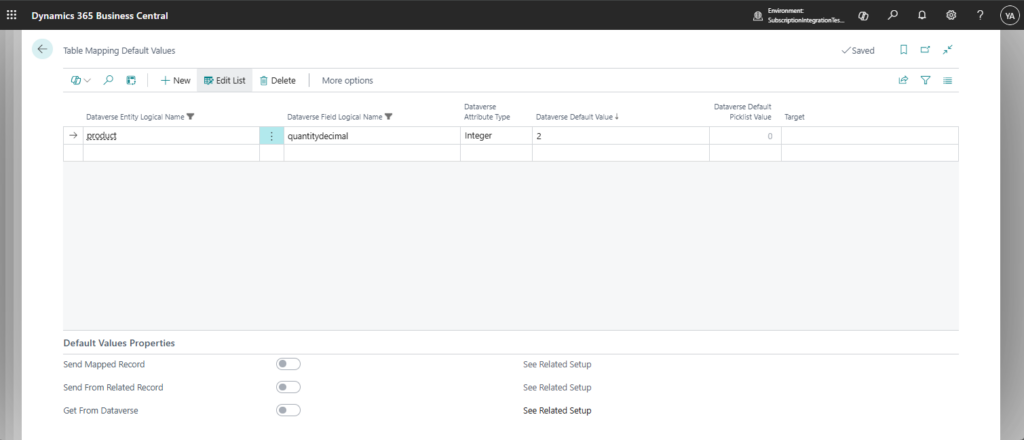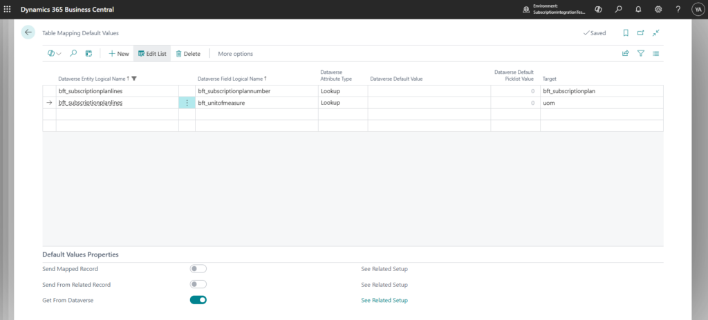 The BC–Dataverse Integrator in Microsoft Dynamics 365 Business Central allows users to configure default values for Dataverse fields when records are created through the integration.