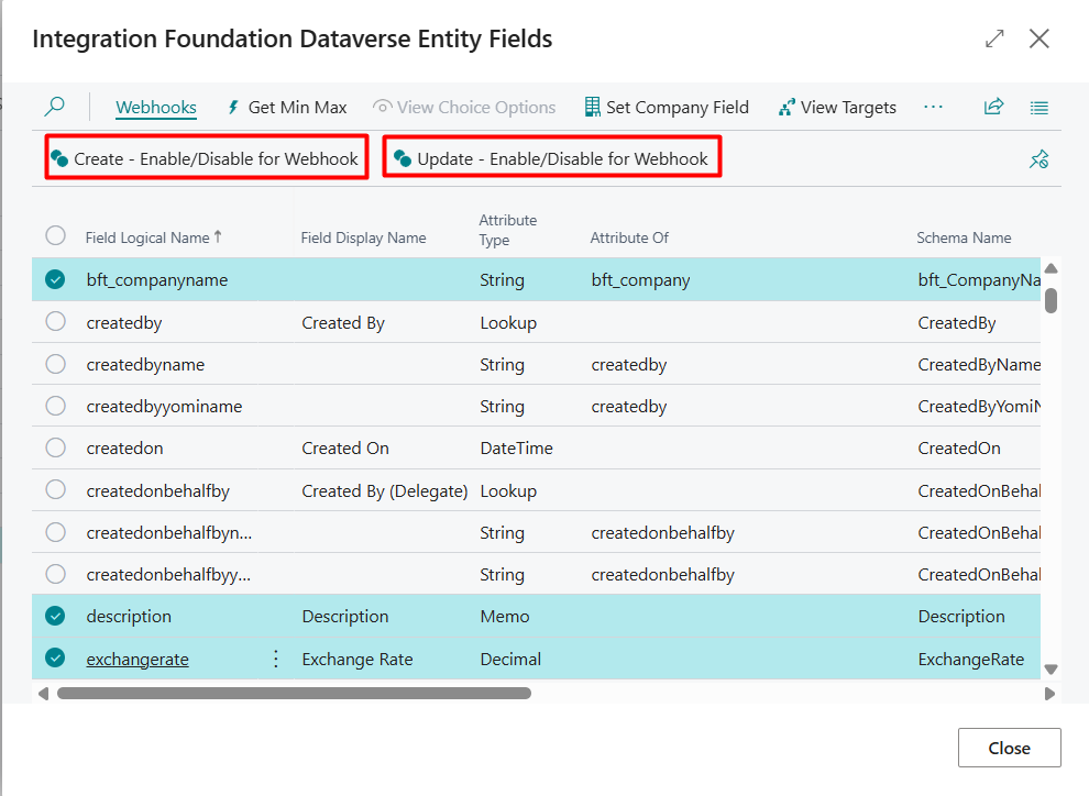 Each Dataverse entity can be enabled for one or more Webhook types and can also be enabled to trigger for all fields or a selected set of fields.