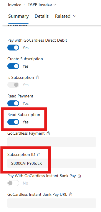 For a subscription payment, the following must be configured on the invoice record before toggling the Pay Now flag.