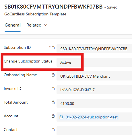 You have finished configuring the GoCardless subscription. Just toggle the Pay Now slider to true and save the Invoice record to trigger the creation of the subscription. Once saving is complete you can toggle the Read Subscription slider to synchronise the subscription details to the Invoice record.