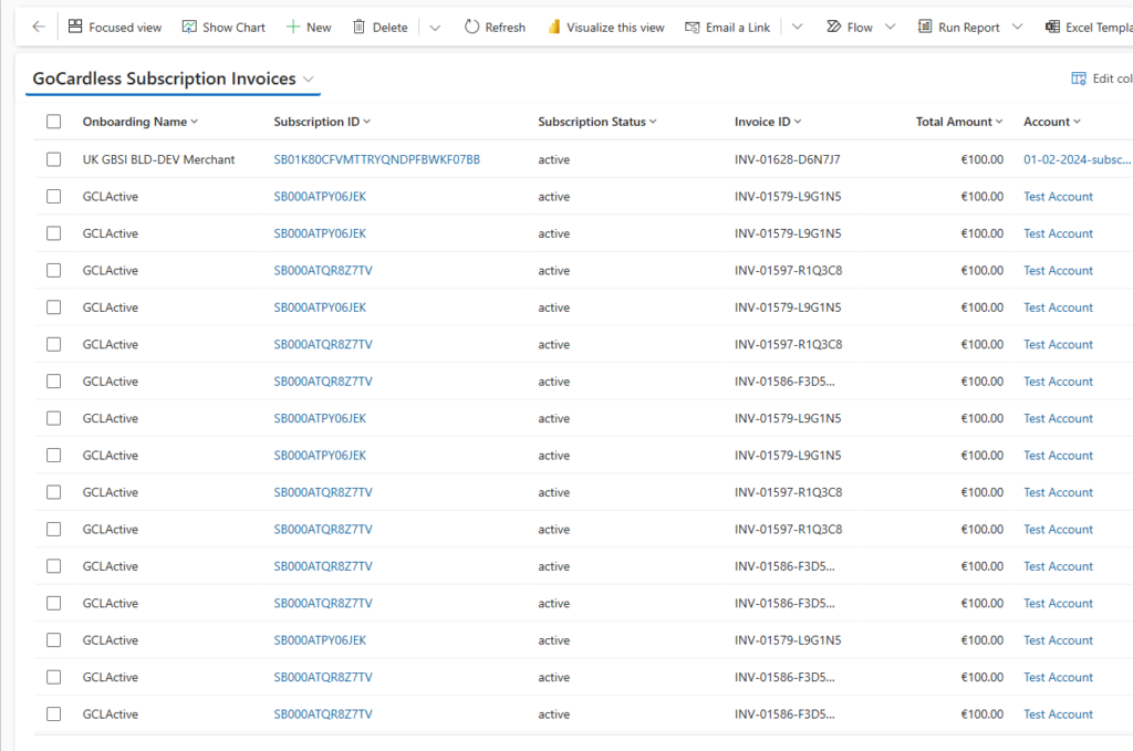 The Invoice records and the GoCardless Subscription Invoices records are created during the payment synchronisation process. This saves a lot of effort in having to manually creating invoice and invoice lines in Microsoft Dynamics 365 Sales to settle against the payments received from the subscription..