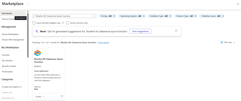 - Click on the Bluefort BC Dataverse Azure Function listing.