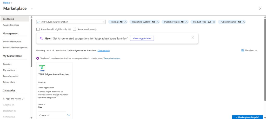 3. In the search bar, type TAPP Adyen Azure Function and press Enter.