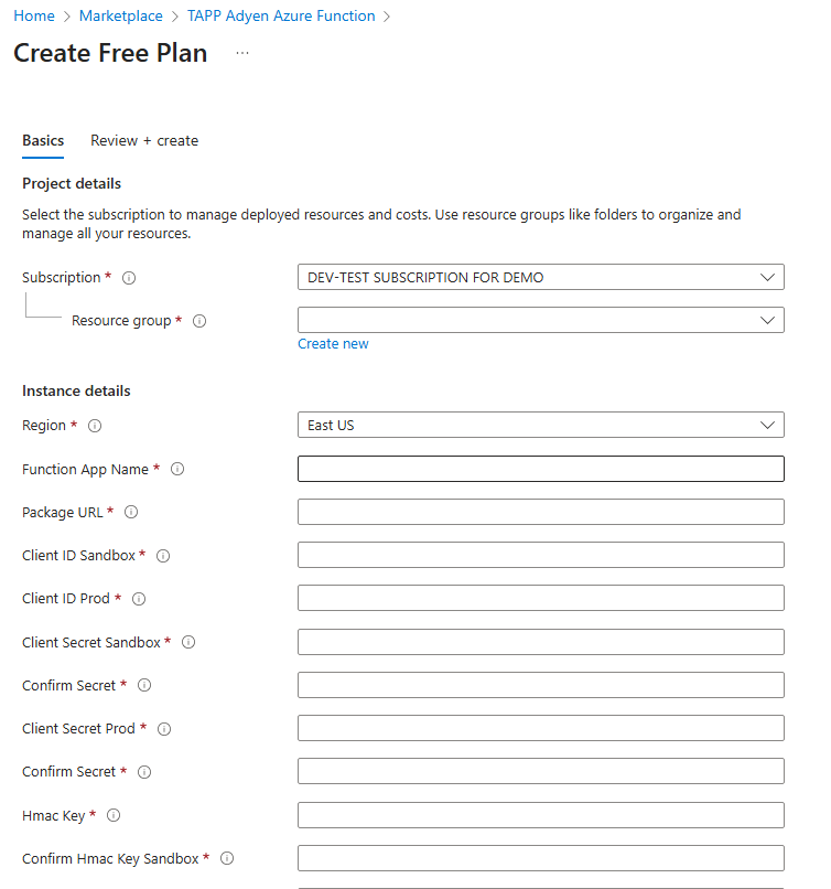 5. How to Deploy the TAPP Adyen Azure Function from the Azure Marketplace