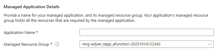 1. Give your Managed Resource Group a meaningful name, e.g., rg-adyen-function.
