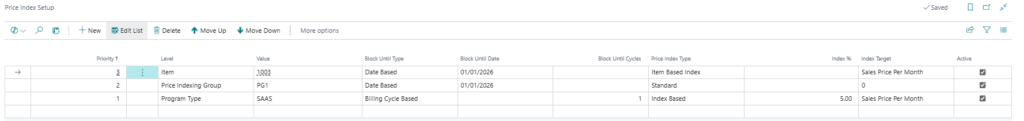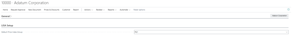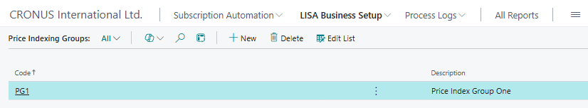 Price Indexing Groups are just a logical grouping with a code and a description. They allow for a subset of customers to be linked to price indexing groups. This adds flexibility to the configuration as the customer subsets for price indexing purposes are independent from the standard customer groups of Microsoft Dynamics 365 Business Central.