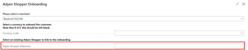 Step 4 (optional): You can select a previously onboarded Adyen Shopper which is associated with this customer. This option is useful if you wish to onboard another token (payment method) for this customer. If left blank, a new Adyen Shopper will be created.