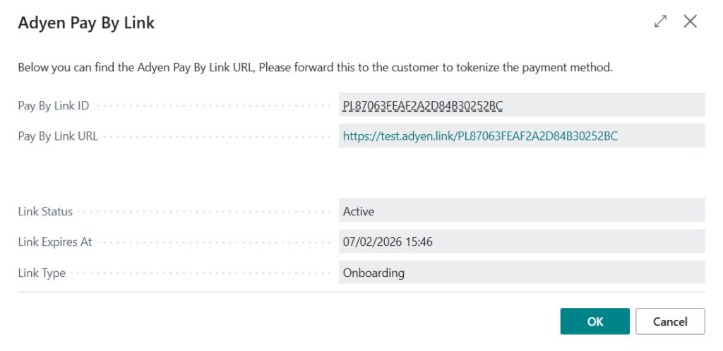 Step 6: Upon clicking finish, a dialog box will show the payment link details