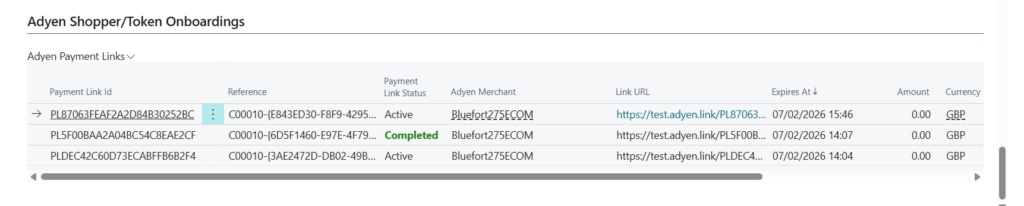 To view open onboardings, you can navigate to the BC Customer Card and scroll to the bottom, you should see a tab named Adyen Shopper/Token Onboardings