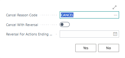 A Cancel Reason Code must be associated with the cancellation. The default one is automatically loaded.