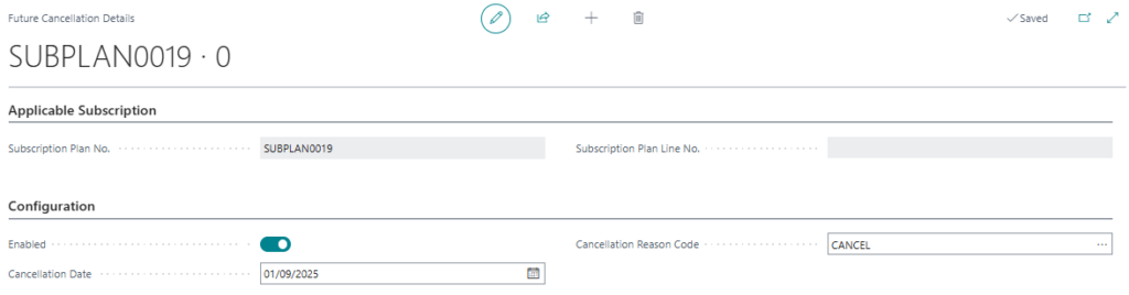 Operationally, future cancellation allows organizations to honor notice periods and planned service terminations without disrupting ongoing processing, as cancellations are executed automatically by the Subscription Processor at the appropriate time. Mandatory cancellation reason codes further enhance reporting, analytics, and root-cause analysis, supporting data-driven decision-making around churn and service optimization.