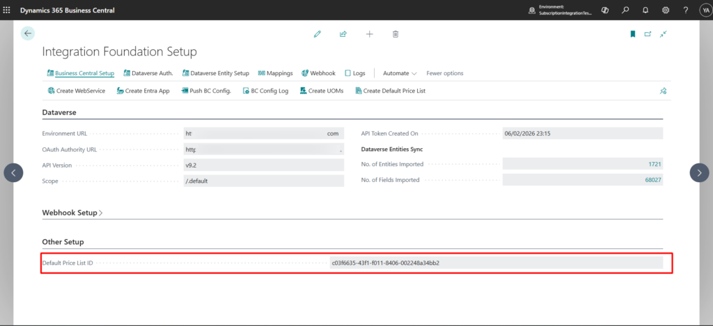 1. Upon confirmation that the price list has been created, this can be confirmed by ensuring that the field Default Price List ID in the Integration Foundation Setup page under the Other Setup FastTab has a value.