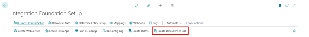 This guide explains how to create and configure the Default Price List to properly support the integration between Business Central and Dataverse.